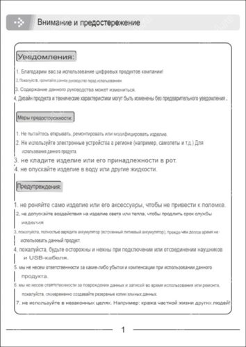 Прослушать записанные аудио файлы: 1) Динамики/наушники. По умолчанию заводскими настройками включены динамики, включать наушники через меню настроек. 2) При помощи ПК. Выключит питание. При помощи кабеля подключить к ПК. Прибор будет определен как карта памяти. Две папки – Записи и Музыка. Внимание, важно!! Не удалять.